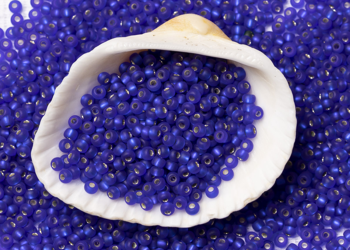 Бисер Чехия круглый 10/0 500 г 37080m прозрачный синий с серебряным прокрасом матовый
