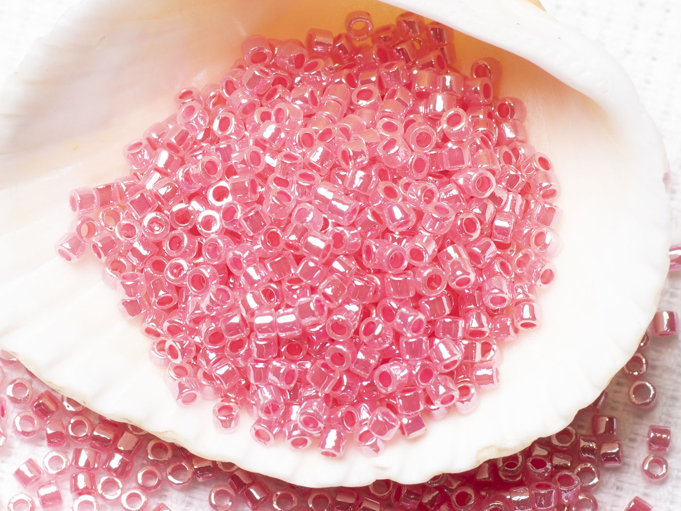 Бисер Япония MIYUKI Delica цилиндрический 11/0 5г DB-0236 розовый с цветной линией блестящий кристалл