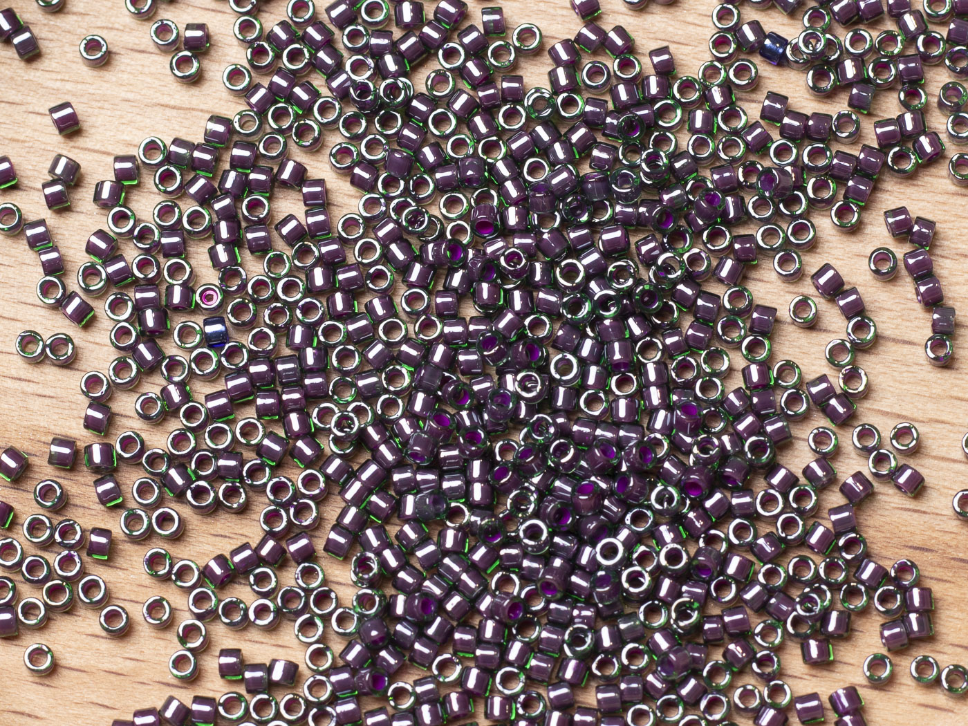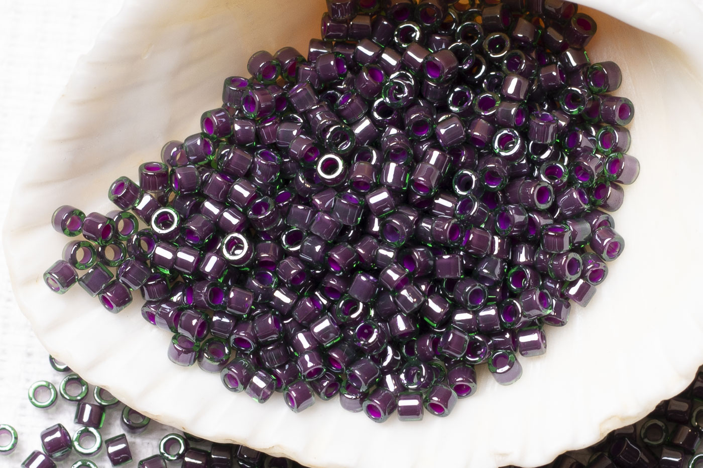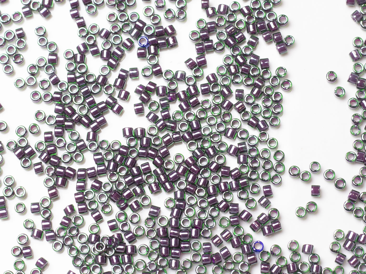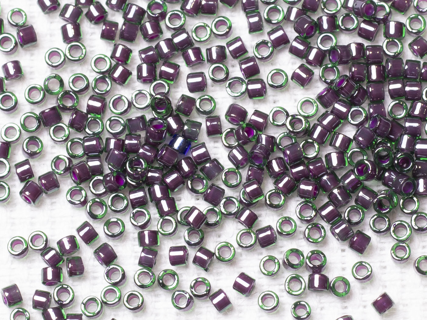 Бисер Япония MIYUKI Delica цилиндрический 11/0 5г DB-0279 зеленый/бордовый с цветной линией блестящий