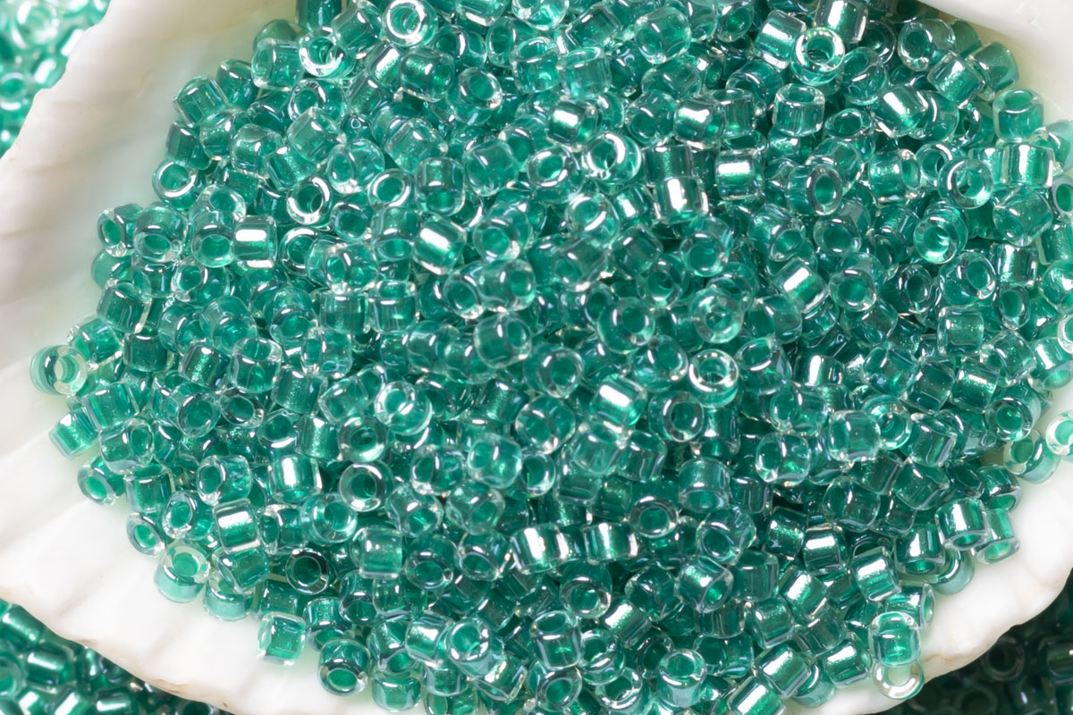 Бисер Япония MIYUKI Delica цилиндрический 11/0 5г DB-0918 искрящийся бирюзовый с цветной линией кристалл