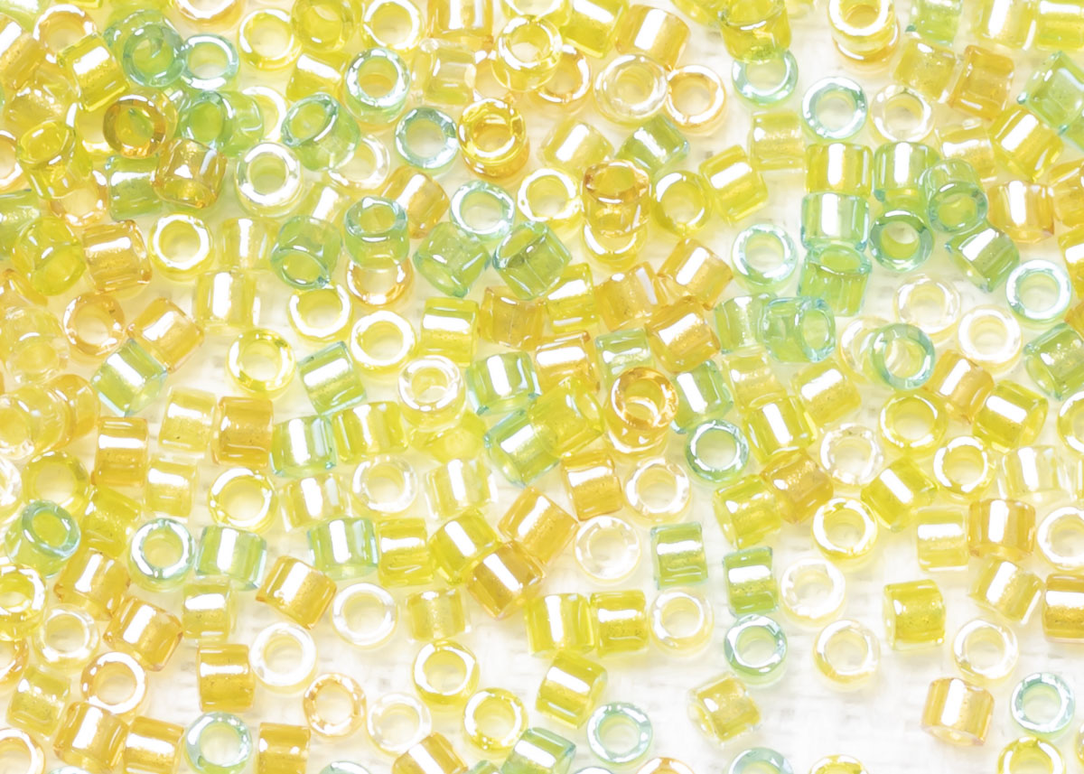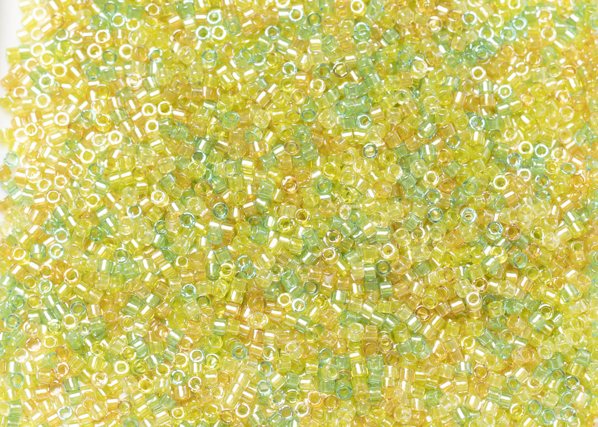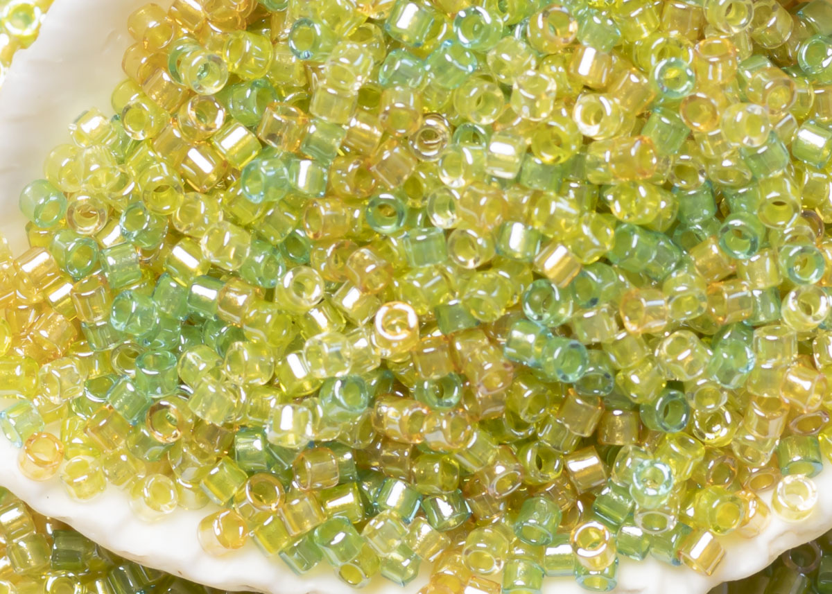 Бисер Япония MIYUKI Delica цилиндрический 11/0 5г DB-0983 смесь янтаря и перидота с цветной линией