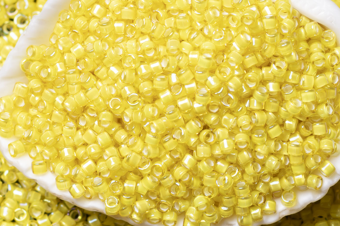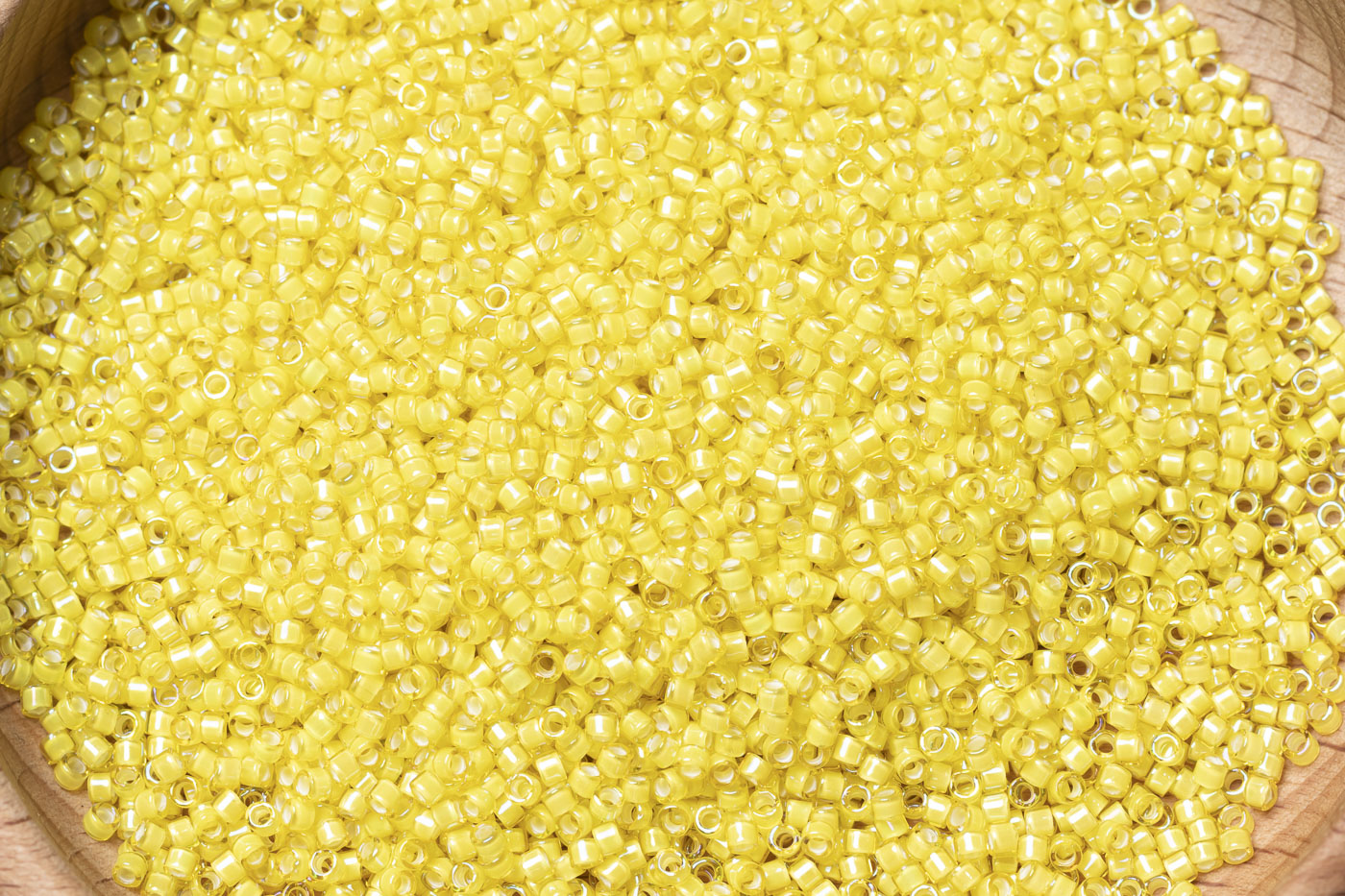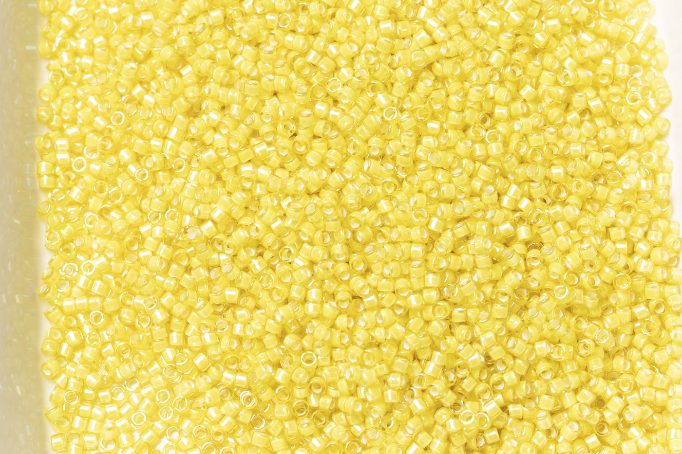 Бисер Япония MIYUKI Delica цилиндрический 11/0 5г DB-1776 белый желтый радужный с цветной линией