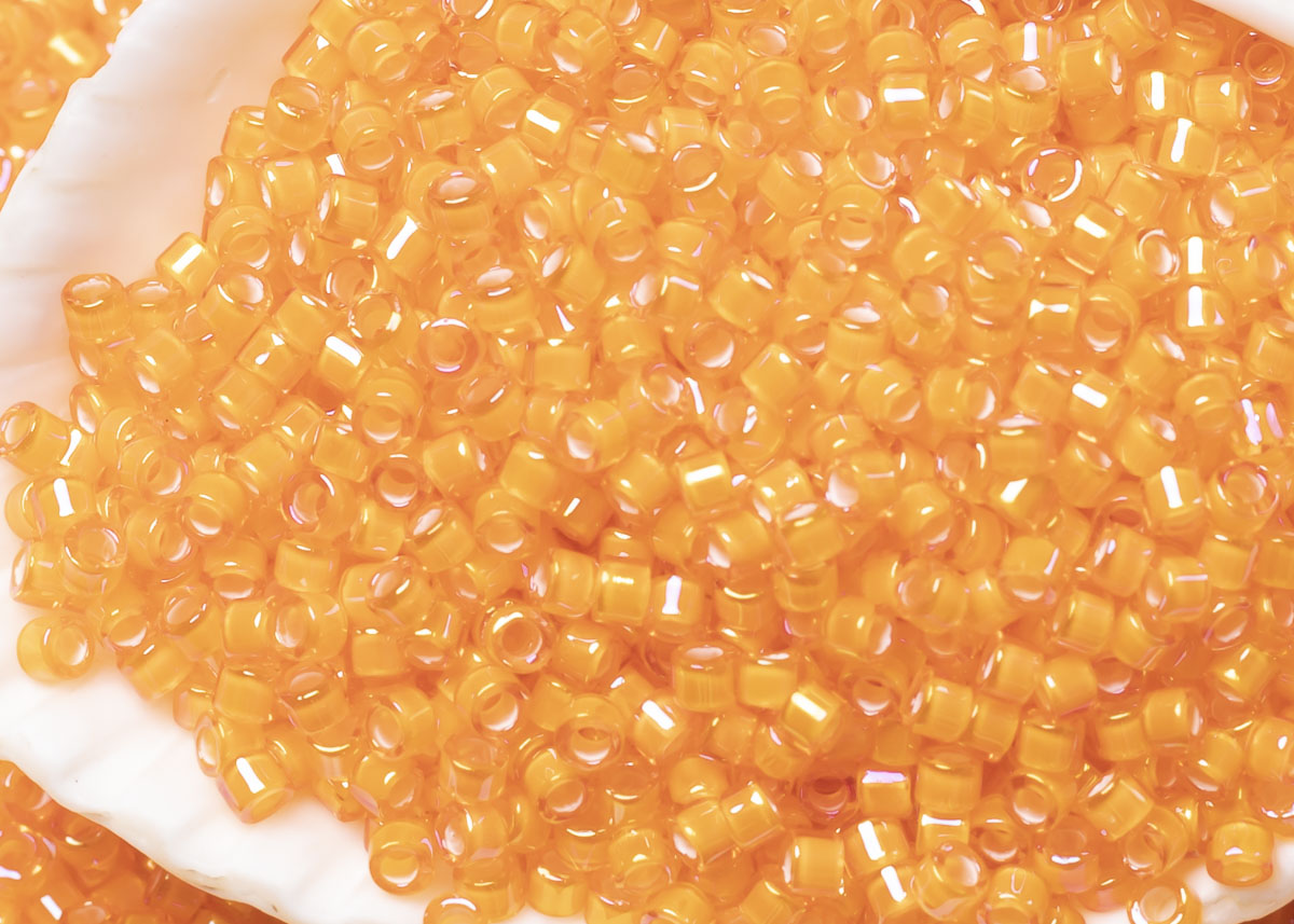 Бисер Япония MIYUKI Delica цилиндрический 11/0 5г DB-1777 белый оранжевый радужный с цветной линией