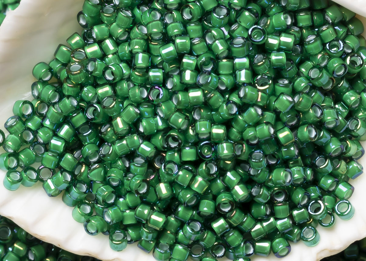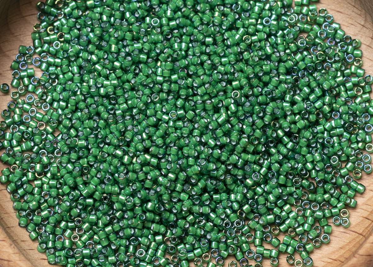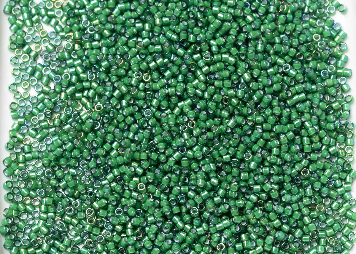 Бисер Япония MIYUKI Delica цилиндрический 11/0 5г DB-1788 белый изумрудный радужный с цветной линией